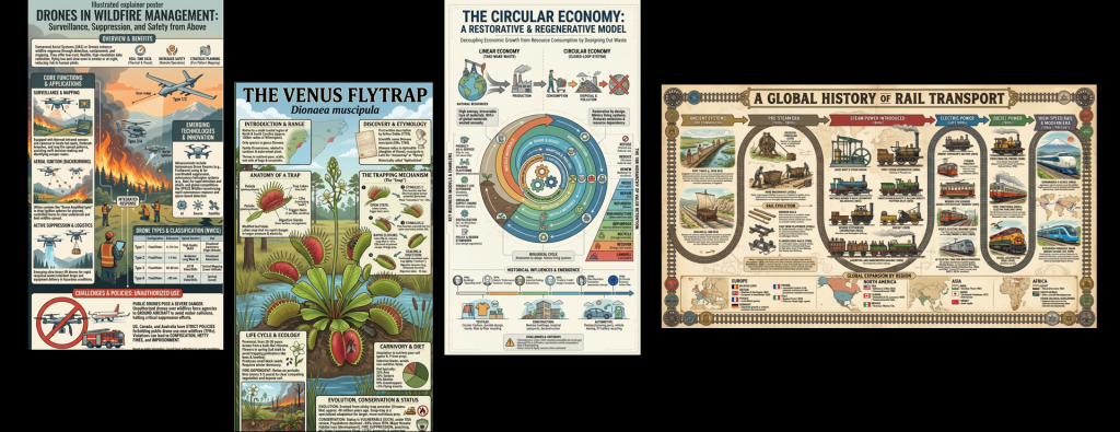 Given the success of our experiments the past few days in transforming complex reports, hearings and legislation into richly detailed and beautiful overview infographics using Google's new Gemini 3 Pro and Nano Banana Pro, what might it look like to apply this same workflow to Wikipedia articles? Imagine generating beautiful easy-to-understand infographic overviews of each article across all of Wikipedia, transforming articles from dense text into stunning and instantly understandable visuals? The infographics below showcase the potential of this vision for a handful of English-language Wikipedia articles. For each article, the full text of the given Wikipedia article was copy-pasted into Nano Banana Pro as-is, along with the prompt "create a large illustrated explainer poster designed to be printed on a large-format poster printer and hung up on the wall that narrates the below Wikipedia page as a single large poster that can be printed and hung on a wall that outlines all of the core details." The images below are Nano Banana Pro's actual output. Amazingly, Nano Banana Pro effectively organizes each article into a compelling visual layout that captures its high-level details. Note that no attempt has been made to verify the accuracy of these visuals. The results below are so compelling that they suggest this vision of an infographic for every Wikipedia page has real merit and models like Nano Banana Pro could at the very least offer a template to help human editors construct final verified infographics.