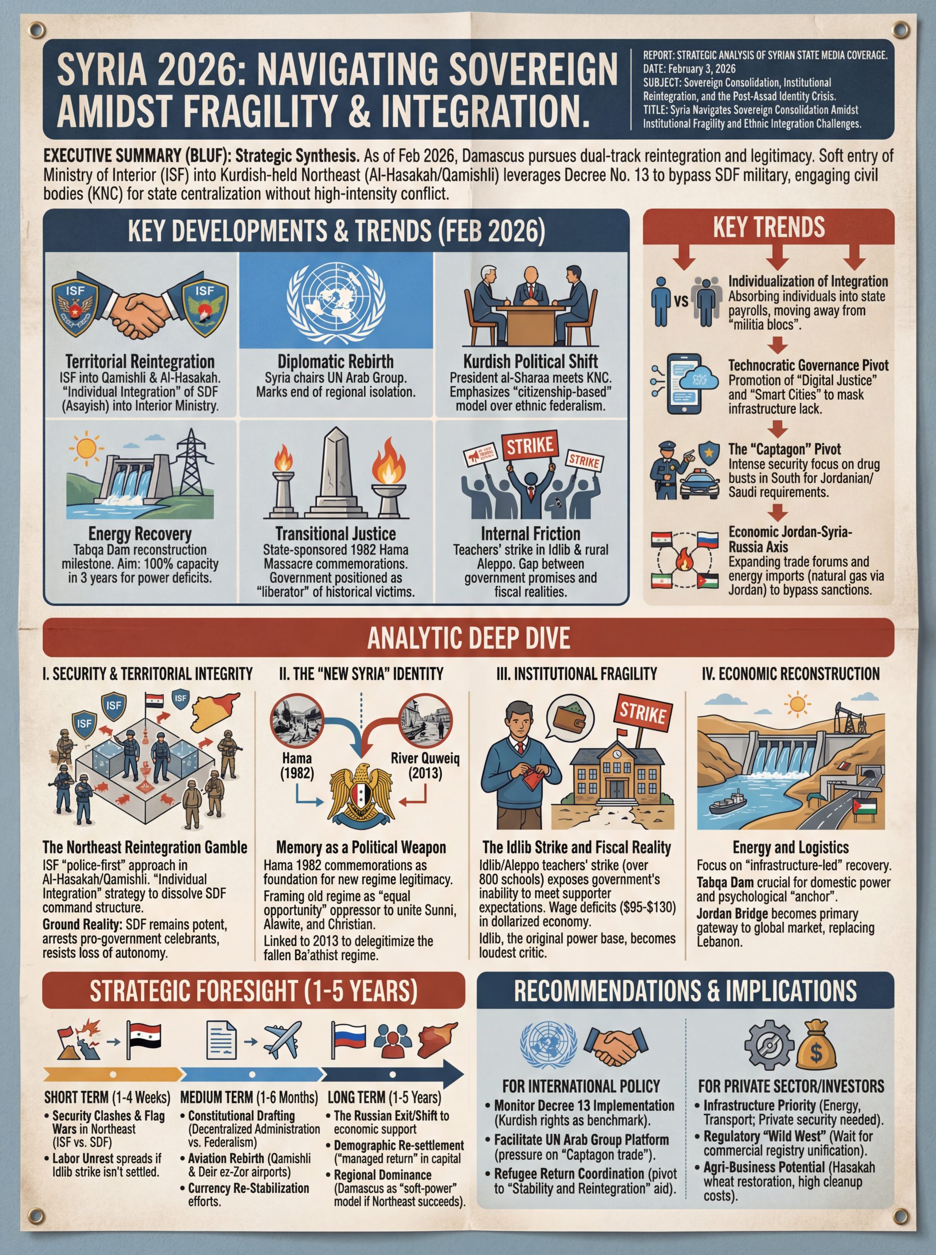 TITLE: Syria Navigates Sovereign Consolidation Amidst Institutional Fragility and Ethnic Integration Challenges.