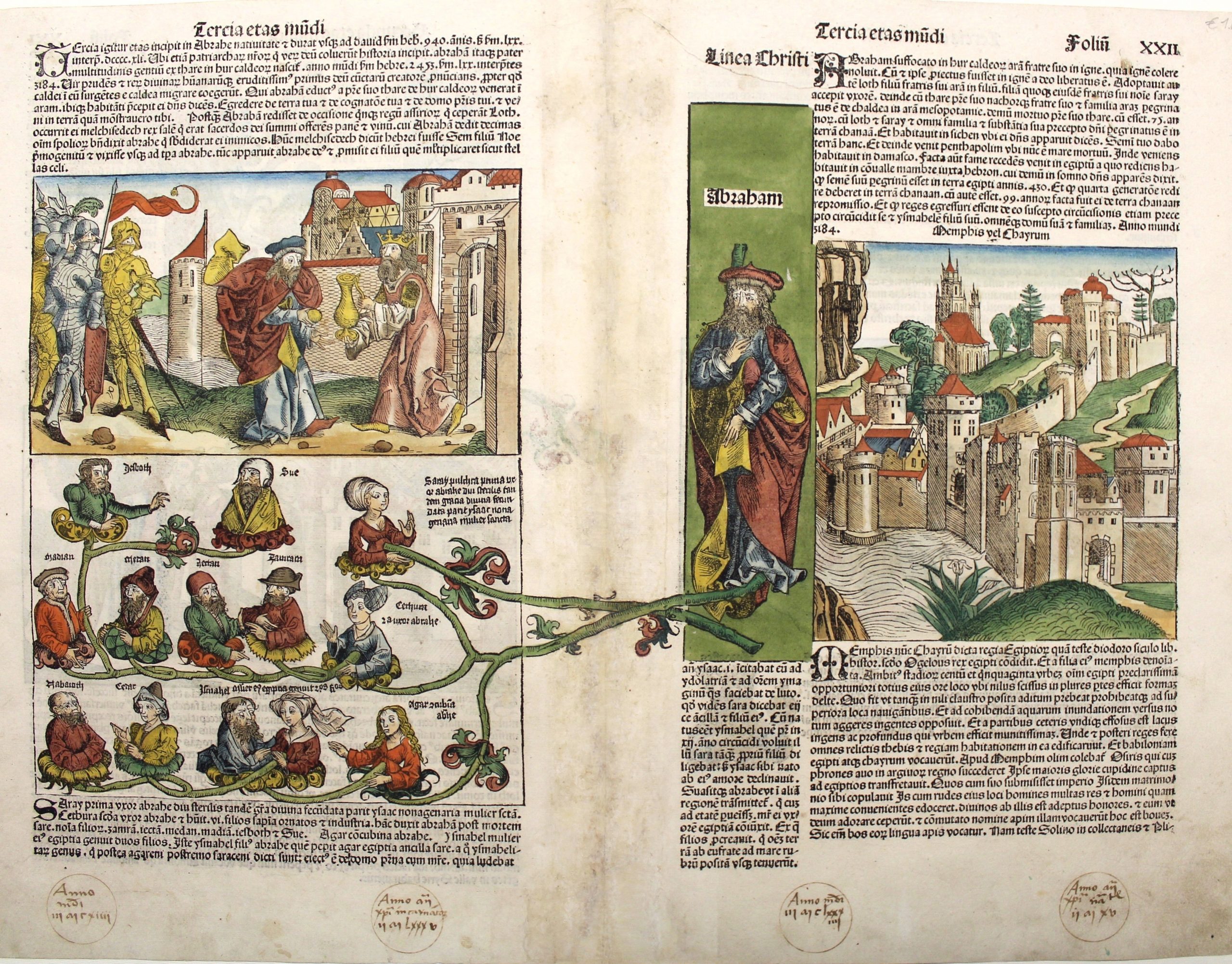 These circles reveal a sophisticated reader from the 16th or 17th century engaging with the text. The Nuremberg Chronicle is a history of the world, and for a Christian reader of that era, understanding the exact timeline of the Patriarchs relative to Jesus was crucial for theology and history.