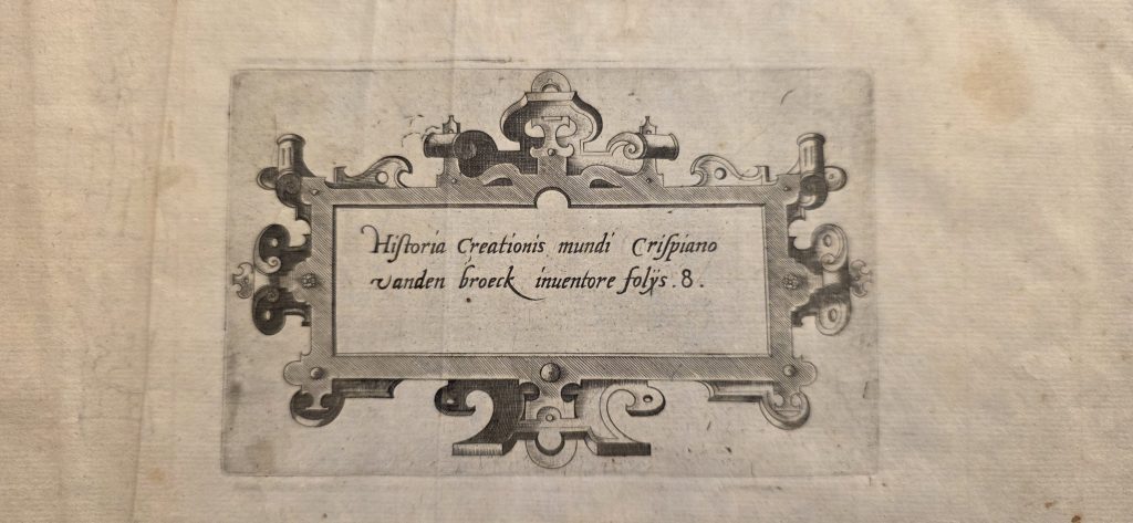 1 Creatio mundi. The Creation of the world. 8 Historia Creationis mundi Crispiano vanden broeck inuentore folijs . 8 . History of the Creation of the world, Crispian van den Broeck inventor Crispiano vanden broeck 8