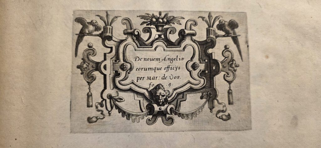 [NOT IN TABLE OF CONTENTS] De nouem Angelis eorumque officijs per Mar : de Vos . fo . 4 . Of the nine Angels and their offices by Mar. de Vos Mar: de Vos 4