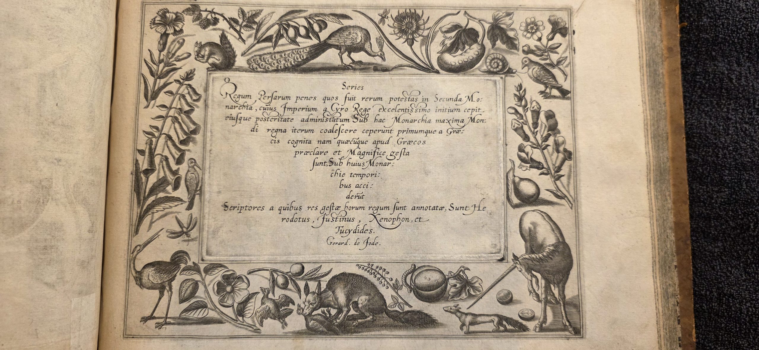 30 Reges Persarum. The Kings of the Persians. 10 Series Regum Persarum penes quos fuit rerum potestas in Secunda Monarchia , cuius Imperium a Cyro Rege excelentissimo initium cepit. eiusque posteritate administratum Sub hac Monarchia maxima Mundi regna iterum coalescere ceperunt primumque a Graecis cognita nam quaecuque apud Graecos praeclare et Magnifice gesta sunt, Sub huius Monarchie temporibus acciderunt. Scriptores a quibus res gestae horum regum sunt annotatae, Sunt Herodotus , Iustinus , Xenophon , et Thucydides . Gerard de Iode. Series of the Kings of the Persians in whose hands was the power in the Second Monarchy, whose Empire took its beginning from the most excellent King Cyrus, and was administered by his posterity. Under this Monarchy the greatest kingdoms of the world began to coalesce again, and were first known by the Greeks, for whatever things were done excellently and magnificently among the Greeks, happened under the times of this Monarchy. The writers by whom the deeds of these kings are recorded are Herodotus, Justin, Xenophon, and Thucydides. Gerard de Jode. Gerard de Iode