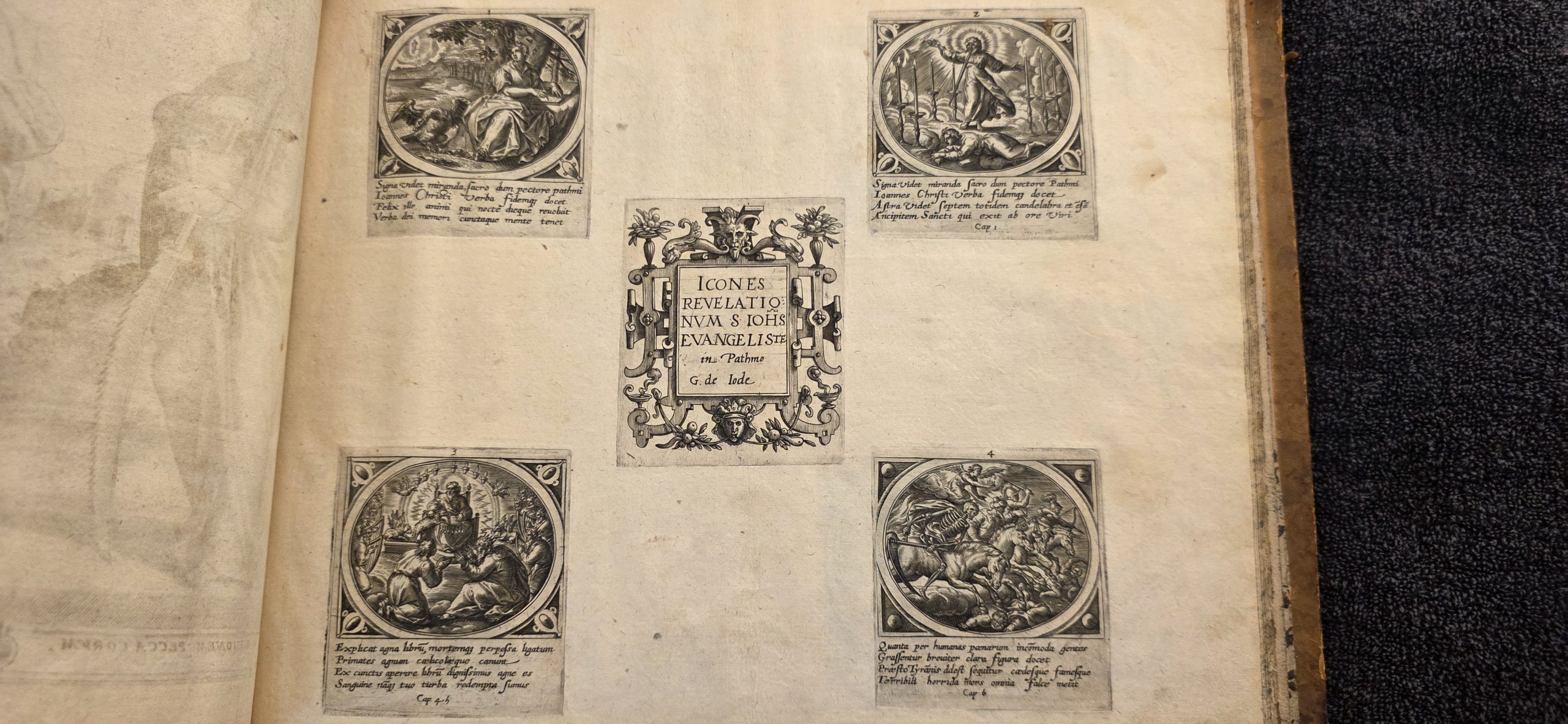 De. Apocalipso seu reuelatione Iohanĩs On the Apocalypse or Revelation of John. fo. 6 ICONES REVELATIONVM NVM S IOHS EVANGELISTAE in Pathmo G. de Iode Icons of the Revelations of St. John the Evangelist in Patmos. G. de Jode G. de Iode