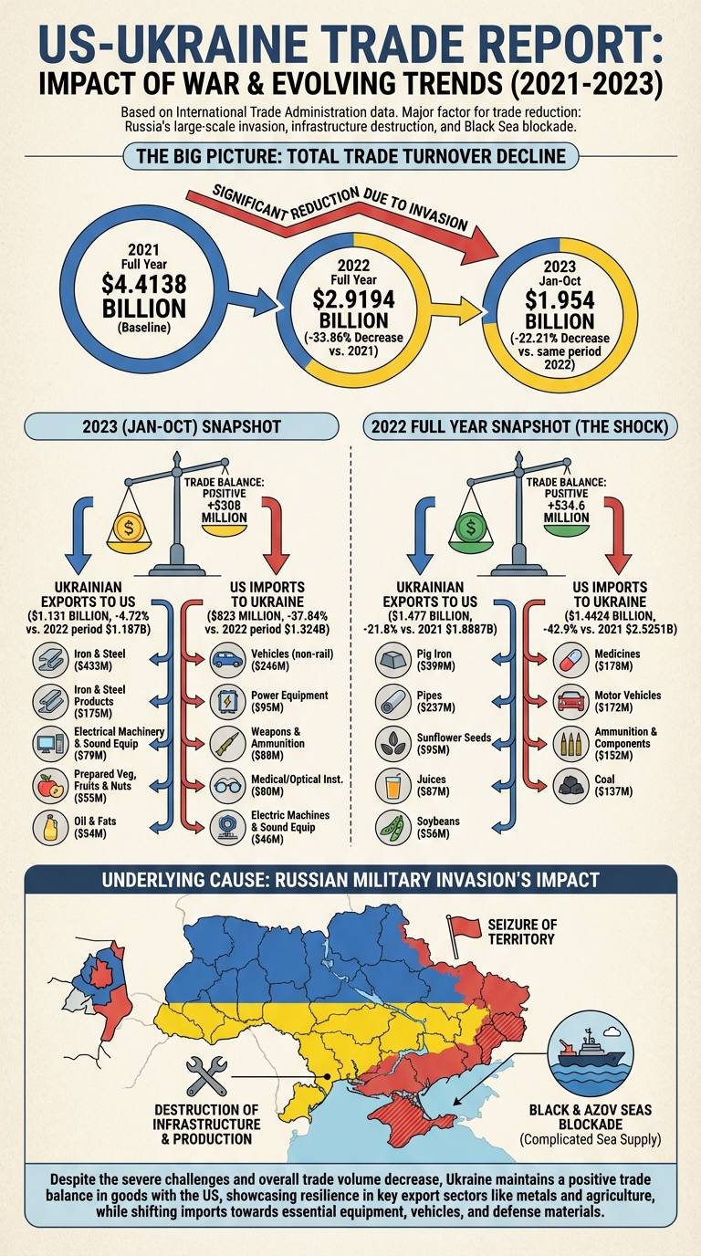How about this "US-Ukraine Bilateral Trade" info sheet from the Ukrainian embassy? It is a densely detailed numbers-filled block of text: perfect for visualizing as an infographic.