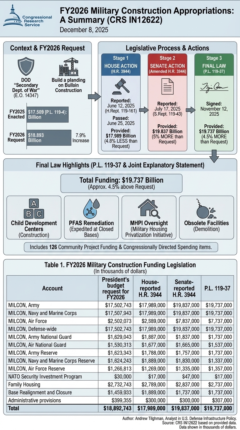 IN12622 – FY2026 Military Construction Appropriations: A Summarys (NOTE: the table in the infographic is wildly incorrect)