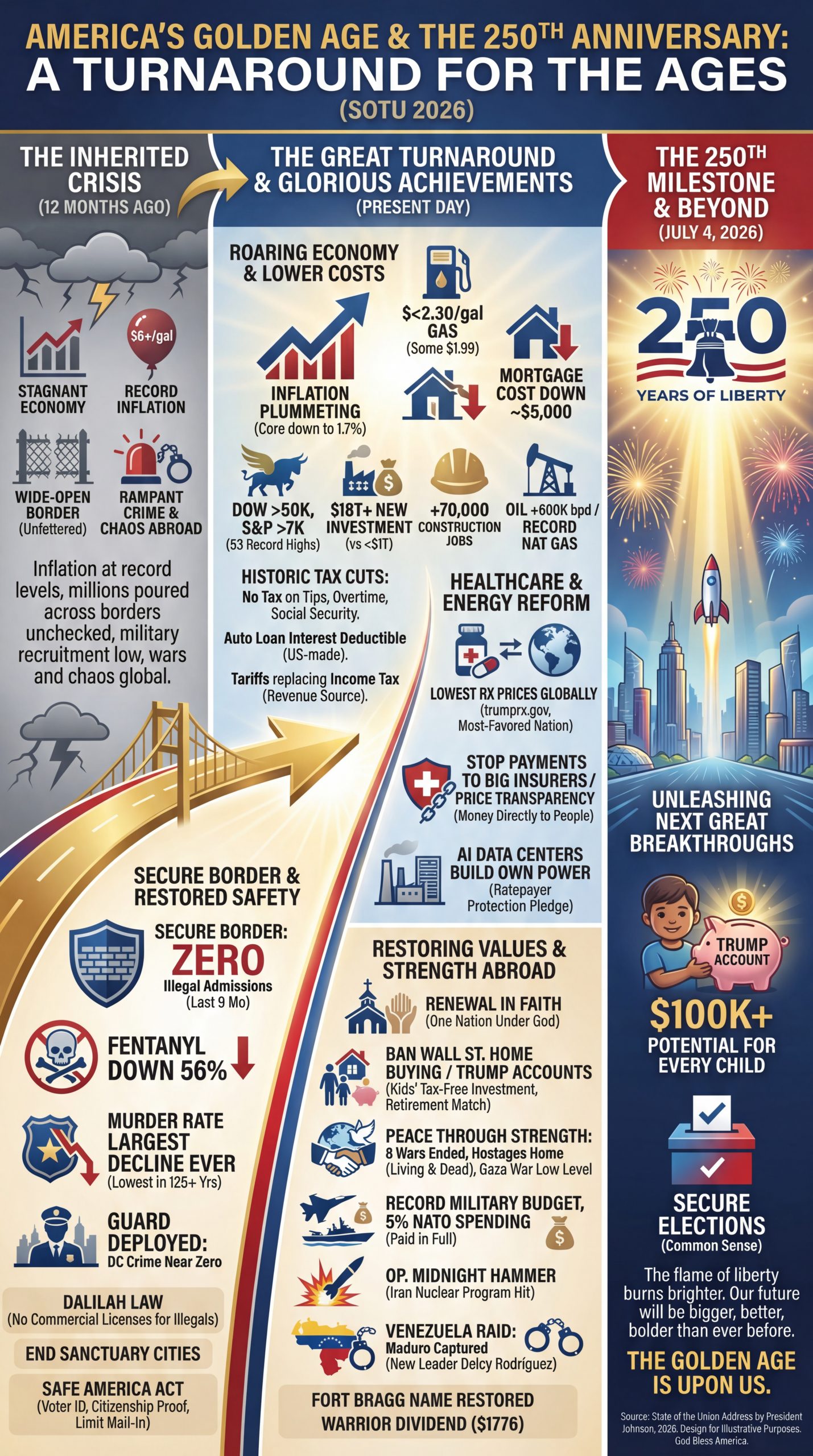 "original_text": "Less than five months from now, our country will celebrate an epic milestone in American history, the 250th anniversary of our glorious American independence. This July 4th...",