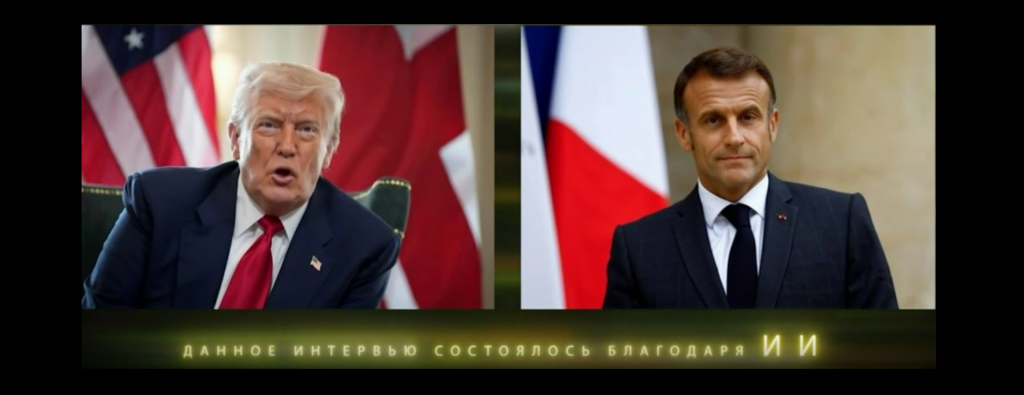 Russian news commentary show PolitUkladchik pioneered the first national television network use of deepfake "interviews" with world leaders and last week was back with its first deepfake "debate" between two heads of state: Presidents Trump and Macron. The quality of the deepfake imagery appears noticeably lower than in previous weeks, though it did a good job of capturing the two leaders' respective typical body language. In an interesting twist, the show restored its onscreen AI disclaimer text that it had dropped in last week's deepfakes.