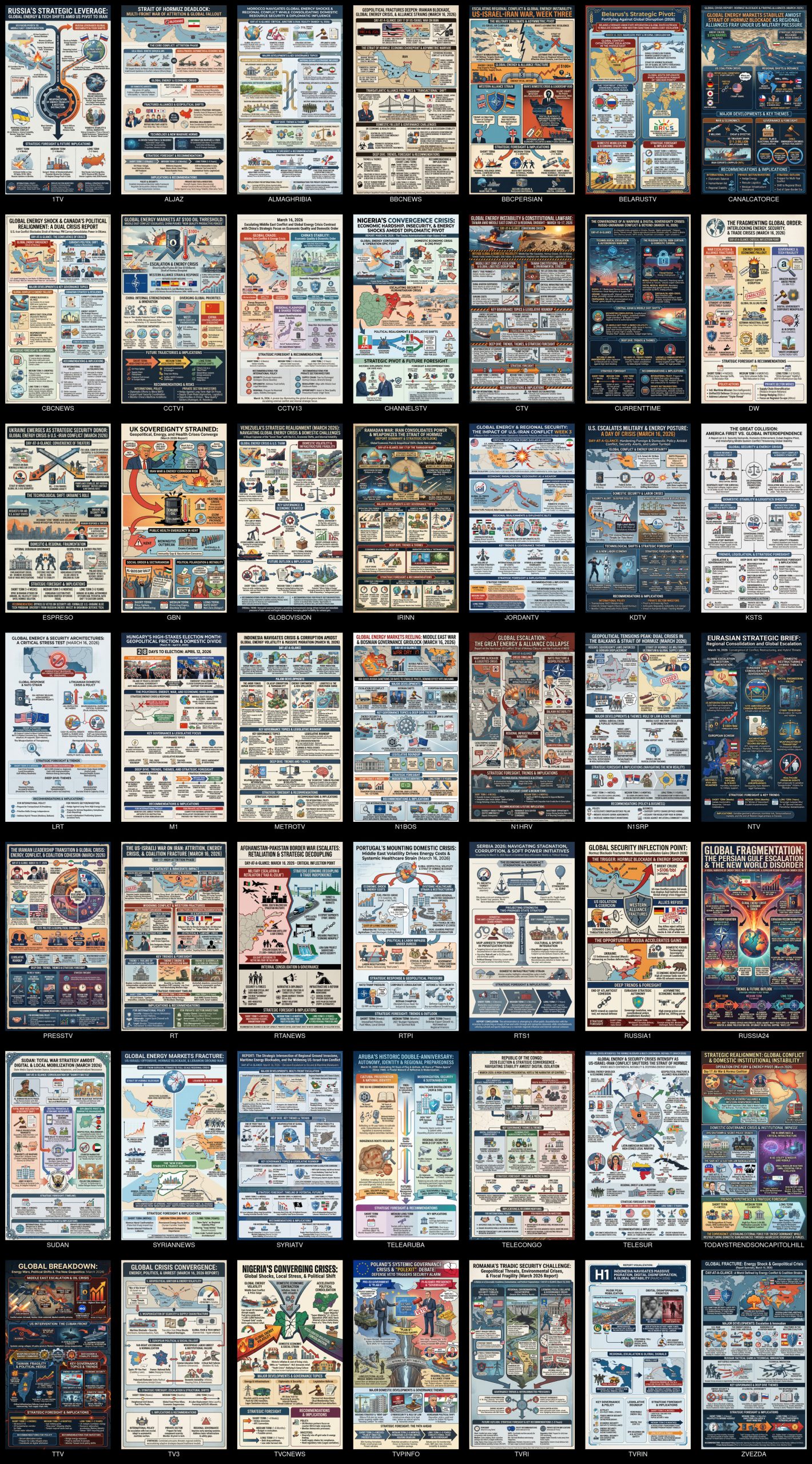 What would it look like to visualize a day of media trends around the world, combining the thematic trend analysis infographics for 50 television news channels into a single montage that makes it clear which shared stories are dominating headlines across countries and which local stories are garnering the most attention in each country? Here we use Gemini 3.1 to quickly interactively generate the ImageMagick command line code to turn a directory of infographics into just such a montage (medium resolution montage / high resolution montage).