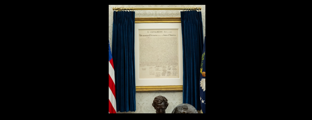 Ever since President Trump unveiled a copy of the Declaration of Independence in the Oval Office last March, speculation has abounded about its provenance, with the White House offering only that "The National Archives delivered the Declaration of Independence to the White House at the President’s request" and that "It's never been up. It's been in the vaults for many, many decades." What exactly could this mysterious copy direct from "the vaults" of NARA be?