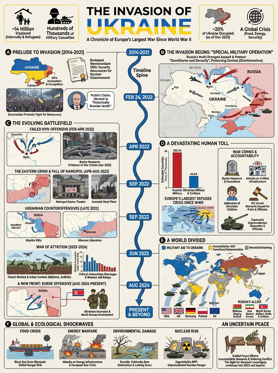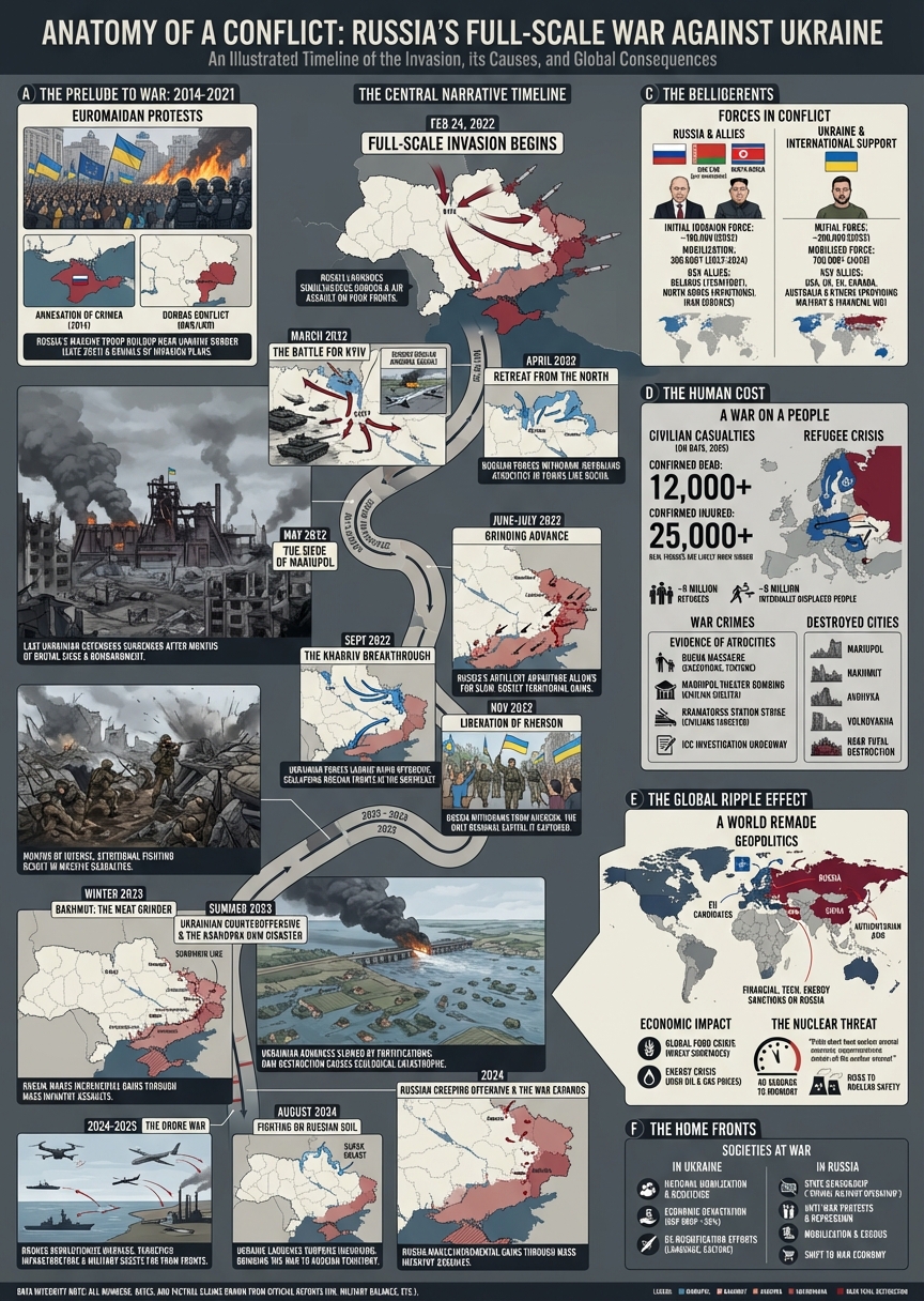 - Style: Clean, modern, infographic-driven. Think "The Economist," "Visual Capitalist," or Kurzgesagt-style illustrations. Use a combination of maps, timelines, icons, illustrative vignettes, and clear typography.