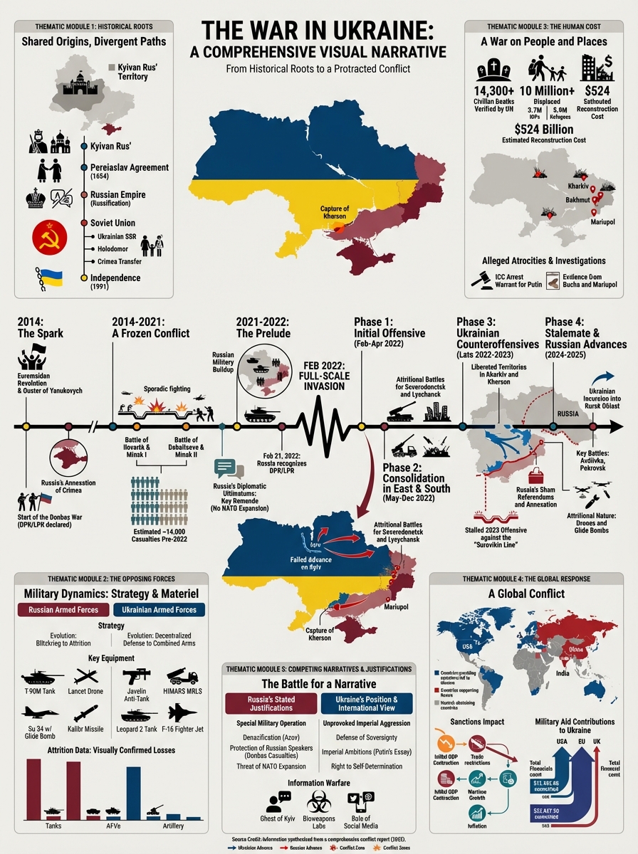 - Grokipedia: This report takes the most detached, analytical approach to causality. Its "Background" section begins with the shared origins of Kyivan Rus', treating the long history of political and cultural entanglement as foundational to the modern conflict. It does not present a single cause but instead structures its analysis around key debates, such as “NATO Encroachment vs. Imperial Ambitions.” This framing treats the reasons for the war as a primary subject of analysis, explaining the Russian and Western perspectives as competing geopolitical theses rather than simply debunking one.
