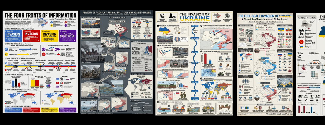 Just how different are the narratives of Russia's invasion of Ukraine as told through the English edition of Wikipedia, the Russian edition, the Ukrainian edition and Grokipedia? Here we use Gemini 3 Pro and Nano Banana Pro to distill the event down into four infographics (one per article) and then a comparative infographic and textual report outlining the major differences in their underlying narratives. Such visuals offer a powerful reminder of just how differently the same event can be seen and narrated across countries and platforms.